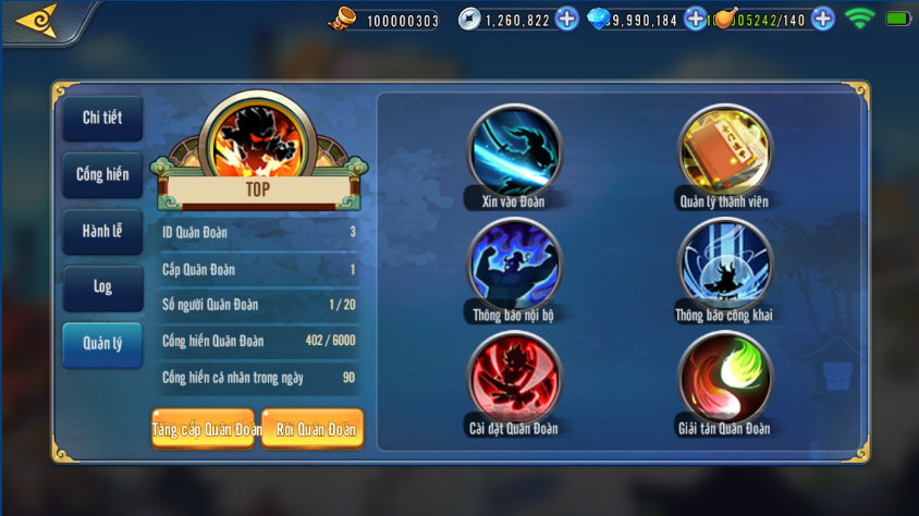 Sau khi tạo lập Quân Đoàn thành công, Chúa Công sẽ thấy giao diện chính của Quân Đoàn: