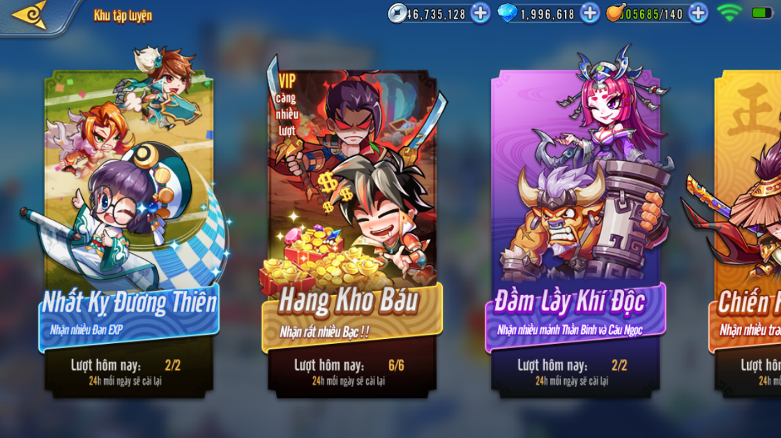 - Mỗi ngày có thể khiêu chiến 2 lần, 24h hàng ngày làm mới.