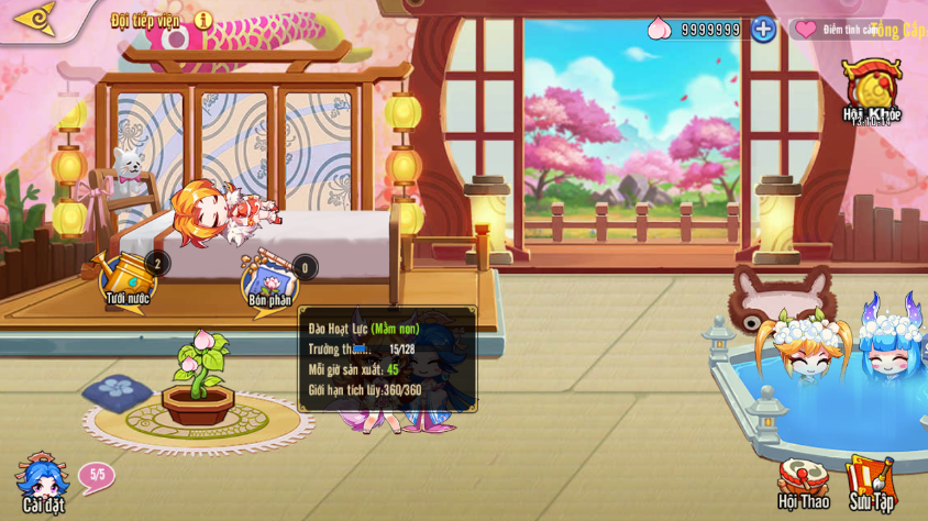 - Bón phân: Nhận ngay lợi nhuận 2 giờ của Đào Hoạt Lực, cần tiêu hao phân bón. Phân bón có thể mua hoặc nhận được từ sự kiện